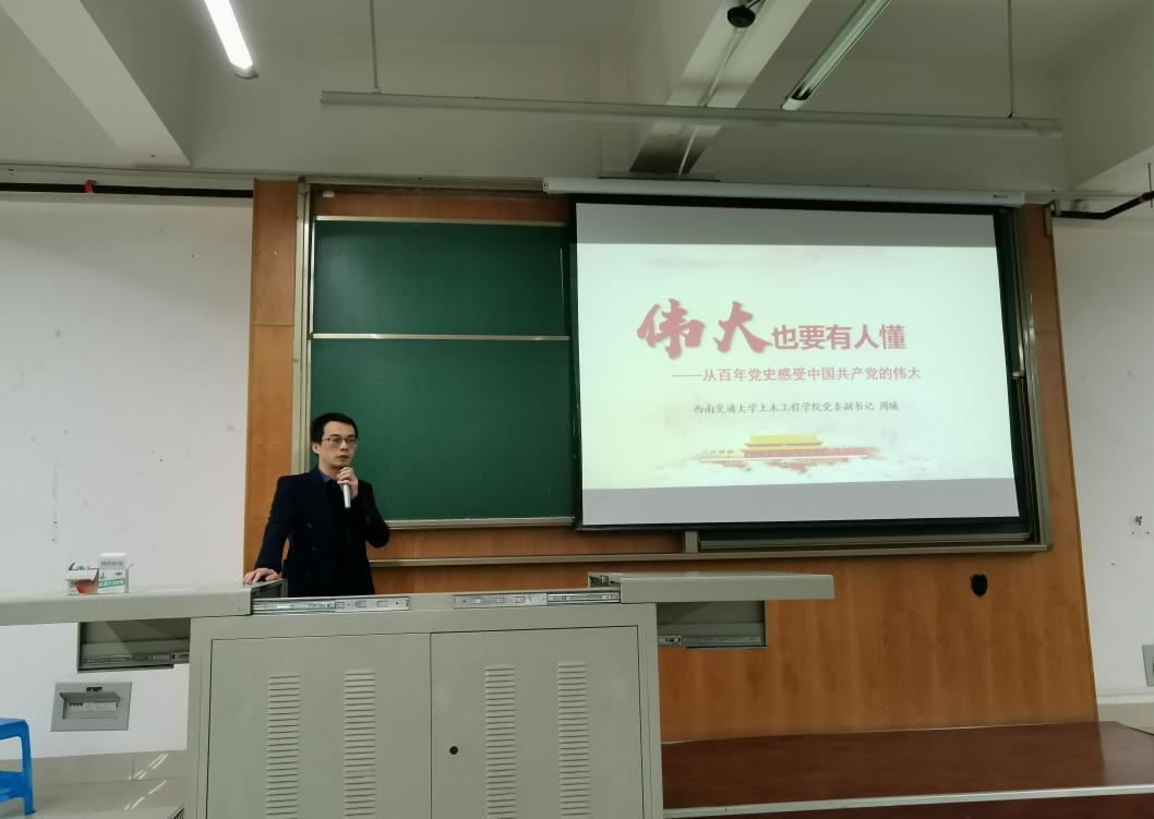 周曦副书记以《从百年党史感受中国共产党的伟大》为主题,提到从1921年到2021年,无数仁人志士,太多闪亮的名字,他们始终冲锋在战斗的最前线,引领着中华民族创造了一个又一个奇迹,给予了人们无穷的精神力量,他们大多数人都有着一个共同的身份——中国共产党党员。中国共产党坚持真理、坚守理想,践行初心、担当使命,不怕牺牲、英勇斗争,不负人民的伟大精神,为中国人民谋幸福,为中华民族谋复兴。