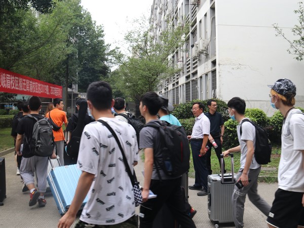 13日、19日下午3时许,同学们到达犀浦校区,老师和志愿者热情接待,随后志愿者引导搬迁同学们至相应的宿舍楼栋。