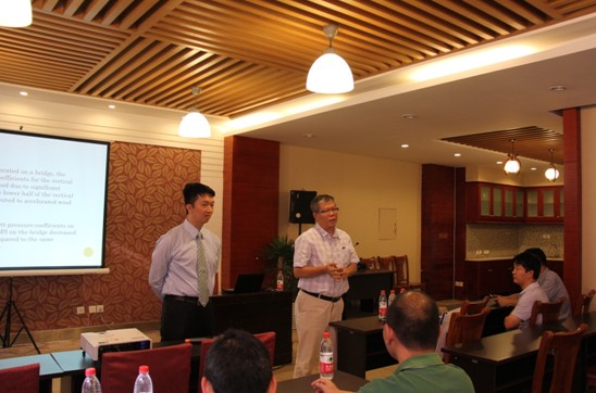 8月26日,香港科技大学风工程团队应桥梁工程系邀请来我校访问交流,下午4点,香港科技大学中电(CLP)风洞实验室项目主管沈其民博士在镜湖宾馆平越厅作了题为“倾斜方柱驰振及香港降噪结构的风荷载”的学术报告交流会。此次学术交流会由桥梁工程系主任李亚东教授主持,与会老师还有李永乐教授,李明水教授等,以及桥梁工程及相关专业的师生。