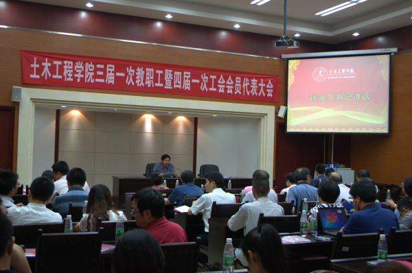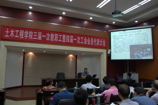 会议初始,校工会主席罗乾超发表讲话。他充分肯定了土木学院在推进民主管理和为广大教职工服务等方面取得的重大成绩,同时希望学院在今后的工作中继续按照工会法及工会章程加强工作。
