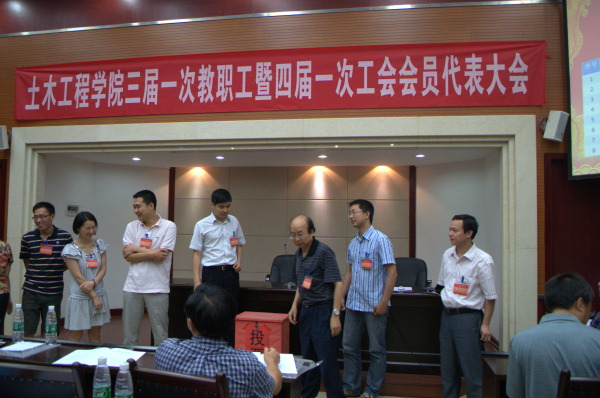 根据会议安排,学院按照工会选举办法,进行了土木学院第四届工会委员的换届选举,选举产生出李彤梅、张继春、商姚、甘泉、俞学英、蒋雅君、赵莉香七人为新一届的土木学院工会委员。