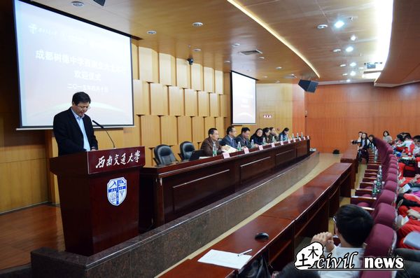 进行参观,土木学院的师生为其在图书馆二号报告厅举行了隆重的欢迎仪式。本次活动主要通过科普讲座、实验室参观、简单结构模型制作等参观交流来增进同学们对西南交大土木工程专业的初步认知,培养他们对土木工程学科的兴趣,为其将来的成长成才提供一条宽广的道路。在欢迎仪式上,《交大蓝》的宣传片吸引了树德学子的目光,土木学院党委李锦红副书记在之后发表讲话,表示土木学院对树德中学一行来交大参观的欢迎,并简单地介绍了交大的概况。树德中学的文波主任也表示他们相当重视此次的访问,同时非常感谢西南交大对此次访问的大力支持和诚挚欢迎,希望交大的老师们能对活动中学生们的不足加以指正。